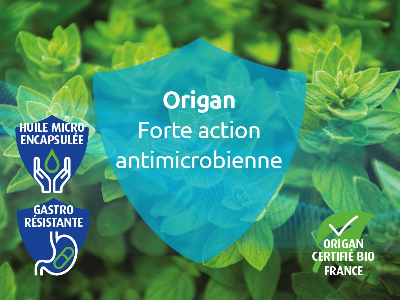 EFSA reconnait la contribution de l’origan pour la digestion et les voies respiratoires. L’huile essentielle d’Origan (Origanum vulgare) du laboratoire Novalturel est une huile microencapsulée certifiée BIO, d’origine de France. Elle est titrée à 70% de Carvacrol, 28% de thymol et 10% de gamma terpinène. Le Carvacrol est le composé de ce principe actif qui conduit sa forte action anti-microbienne. Le thymol, grâce à son action anti-infectieuse à large spectre, viendra renforcer l’effet. Le gamma terpinène offre une forte activité antioxydante. En phytothérapie, l’origan est utilisé depuis plus de 4000 ans pour ses propriétés antiseptiques.