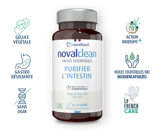 Novalclean est un supplément nutritionnel spécialement conçu pour lutter contre les infections chroniques ou aigües des intestins. Il assainit le système digestif avant les actions de rééquilibre de la muqueuse intestinale (Novalgut) et du microbiote.