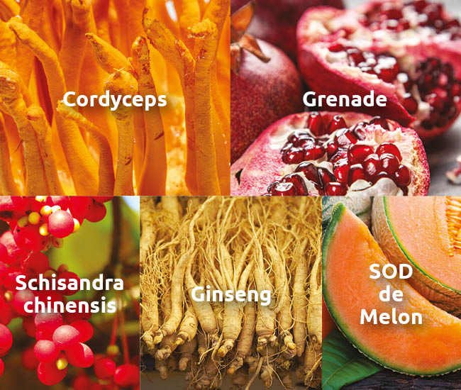 Formule EXPERTE avec ginseng1 cordyceps, schisandra2, grenade et SOD de melon.
