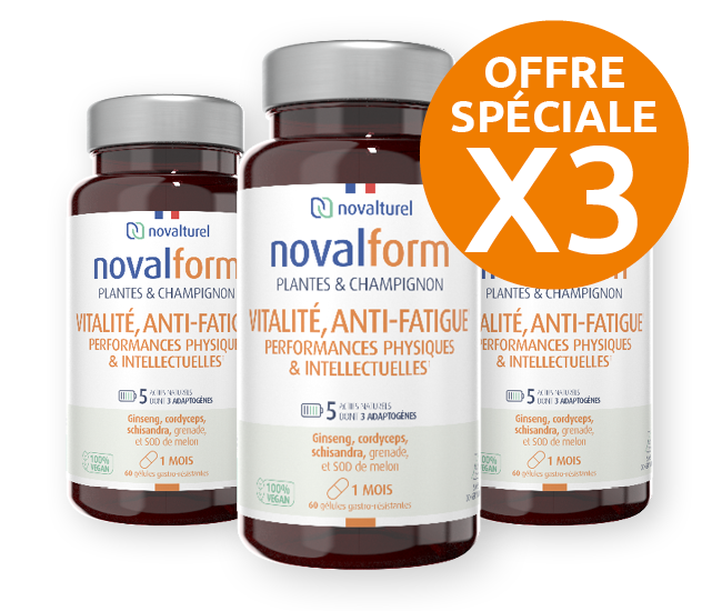 Cette triple action adaptogène apportée dans l’innovation Novalform permettent à l’organisme de mieux résister face au stress exogène, de renforcer les défenses immunitaires et de stimuler les performances physiques ou intellectuelles.