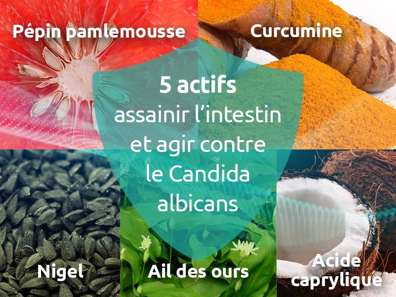 Innovation spécialement conçue pour lutter contre la prolifération fongique2 dans l’intestin. 5 ingrédients actifs naturels.