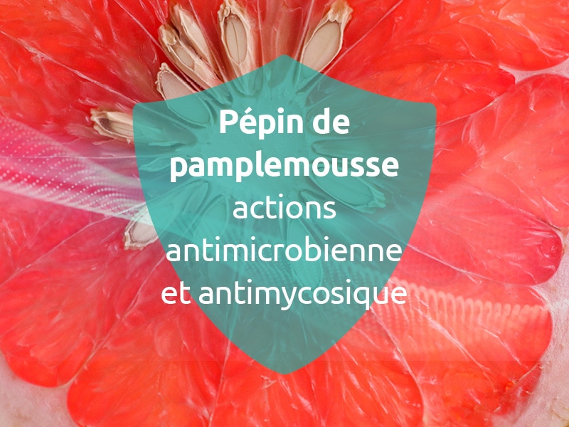 De par sa composition, notamment riche en vitamine C et bioflavonoïdes (certifié et titré à 50%), l’extrait de pépin de pamplemousse (Citrus paradisi) possède des vertus bénéfiques antimicrobiennes et antifongiques. Son spectre d’activité affecterait près de 800 virus différents (bactéries et champignons). Il exerce une action puissante antimycosique de désorganisation des parois cellulaires des champignons tel le Candida albicans. Ce principe actif est donc très performant pour lutter contre les candidoses intestinales. C’est aussi un antioxydant naturel.